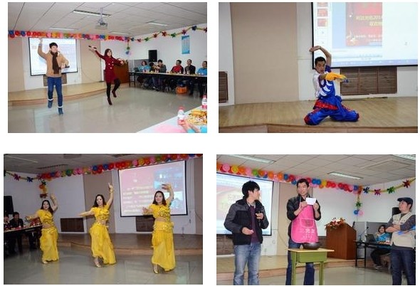 ????? 晚會現(xiàn)場雖然比較節(jié)儉,卻處處洋溢著喜氣洋洋的和諧氛圍。晚會內(nèi)容豐富多彩,包括歌曲、戲曲、舞蹈、小品、魔術(shù)、男女對唱、武術(shù)等十五個節(jié)目,給全體觀眾們帶來了一場美妙的視聽盛宴。一首合唱歌曲《猜》拉開本次晚會的帷幕;熱辣,奔放的西班牙之夜、印巴熱舞給大家?guī)У搅水悋橛?;根?jù)公司文化改編的小品《找工作》妙趣橫生,耐人尋味,迸發(fā)出積極向上的正能量;武術(shù)表演懸念頓生,豪氣沖天;歌曲《暗香》、《猜》演繹了情深意長、溫馨浪漫的真摯情感;詩朗誦《咱們工人有力量》,節(jié)目巧妙運(yùn)用詩朗誦獨(dú)特的語言藝術(shù),謳歌公司發(fā)生的變化和取得的輝煌成就,歌頌了利達(dá)人的敬業(yè)精神、團(tuán)隊(duì)合作精神,真情流露,感人肺腑,讓在座的觀眾贊嘆;小品《胡導(dǎo)》以其詼諧幽默的語言、滑稽搞笑的到位表演的藝術(shù)表現(xiàn)形式更是笑爆全場;更有郭富強(qiáng)表演的魔術(shù)和蔣麗的戲曲表演,讓我們領(lǐng)略了利達(dá)人別樣的激情與風(fēng)采。抽獎活動穿插期間,將聯(lián)歡會氣氛一次次推向高潮。