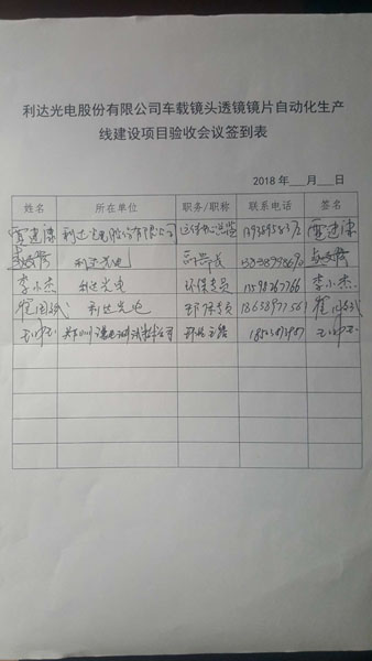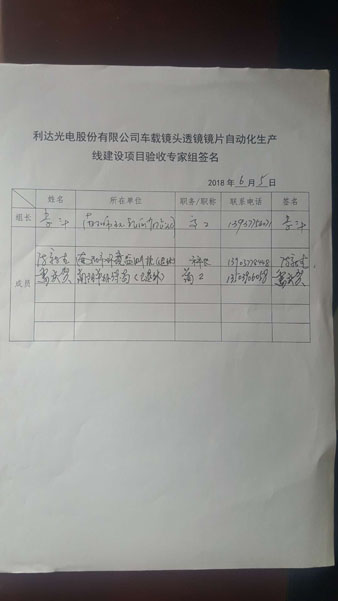 ??? 利達(dá)光電股份有限公司車載鏡頭透鏡鏡片自動(dòng)化生產(chǎn)線建設(shè)項(xiàng)目竣工環(huán)境保護(hù)驗(yàn)收意見(jiàn) |