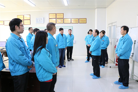 ??????? 2月11日,是公司春節(jié)過(guò)后上班的第一天。上午9時(shí)許,公司董事長(zhǎng)李智超、總經(jīng)理付勇帶領(lǐng)領(lǐng)導(dǎo)班子成員深入各職能部門(mén)、各事業(yè)部看望廣大員工。公司領(lǐng)導(dǎo)一行步伐鏗鏘,每到一處都向廣大職工送去新年的祝福,并簡(jiǎn)要介紹了公司發(fā)展形勢(shì),勉勵(lì)廣大職工在新的一年繼續(xù)發(fā)揚(yáng)奮斗精神,推動(dòng)各項(xiàng)工作再上新臺(tái)階。 |