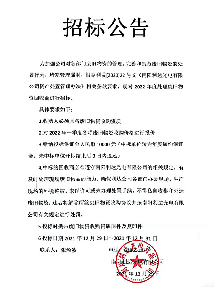 2022年度處理廢舊物資回收商招標(biāo)公告