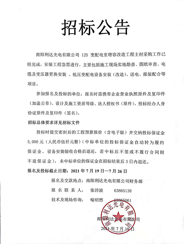 - (2025-07-17)利達(dá)光電公開招聘財務(wù)部部長擬錄用人員公示