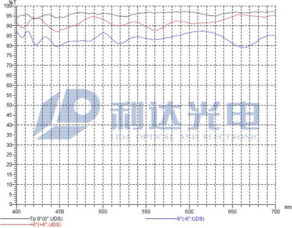 規(guī)格:(材料K9) S光0°入射 420 ~680nm Ts(平均)≥95%; ± 6° Ts(平均)≥92%; P光0°入射 420 ~680nm Tp(平均)≥95%; ± 6° Tp(平均)≥82%。 |