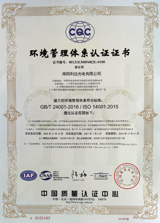 環(huán)境管理體系認(rèn)證證書(shū)(中文)